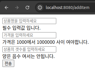 addItem 메서드의 파라미터에 Item객체에 @Validated 애너테이션이 붙은 것을 보실 수 있습니다.